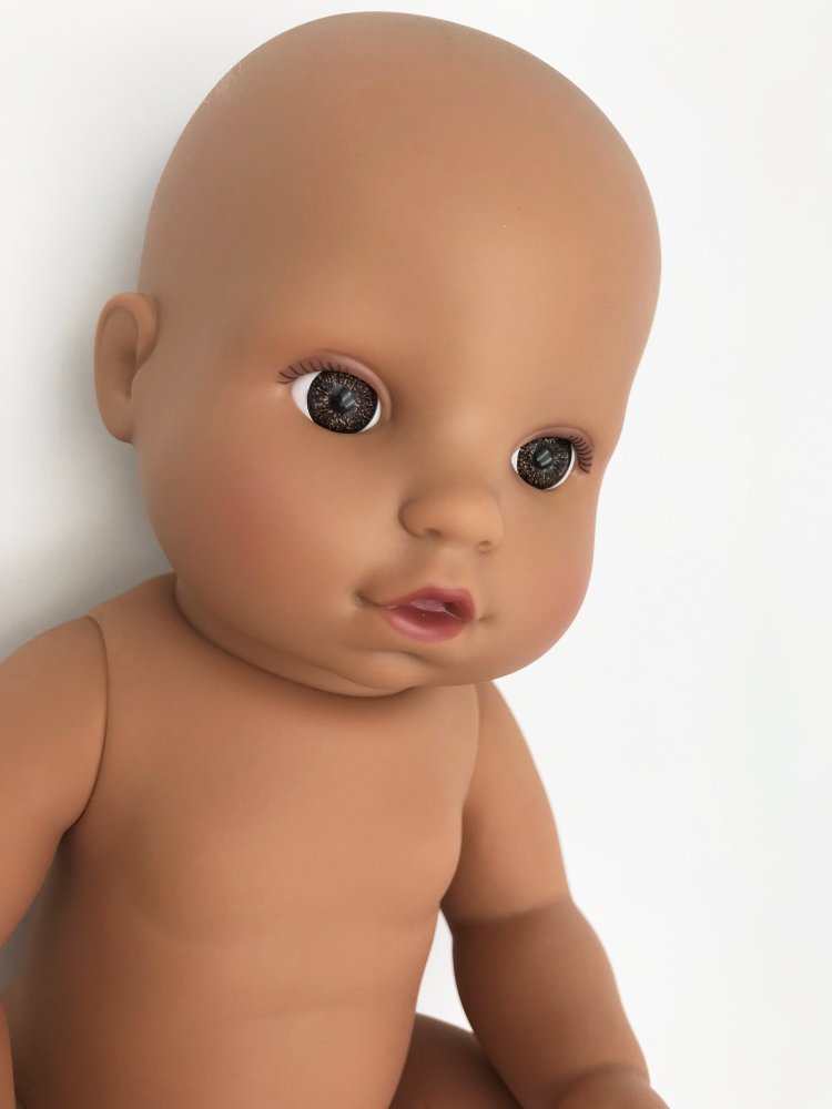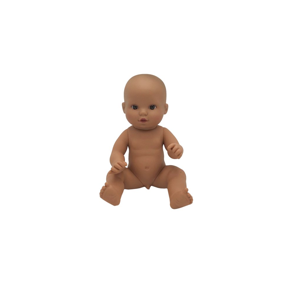 Nyfødt drengedukke (Latinamerikansk) i plast uden hår.