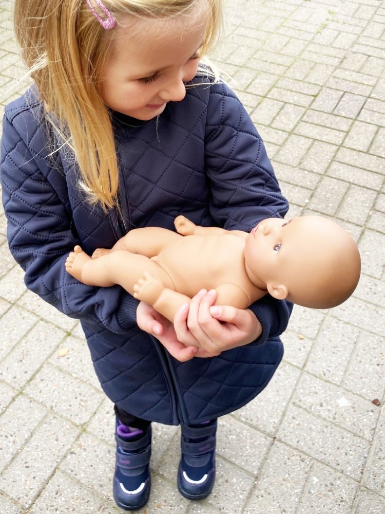 Dukken er kønspræget og leveres uden tøj.