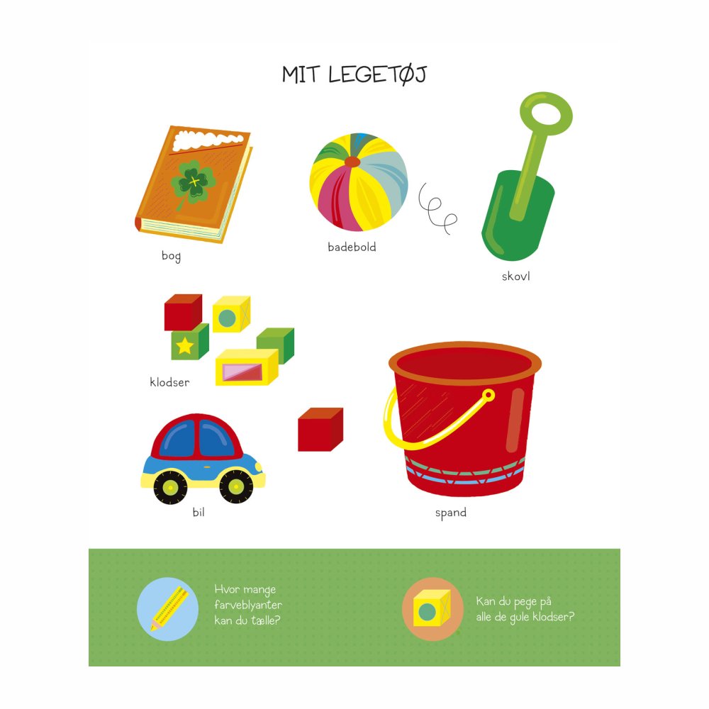 Nederst på hver side er fire enkle og sjove spørgsmål,