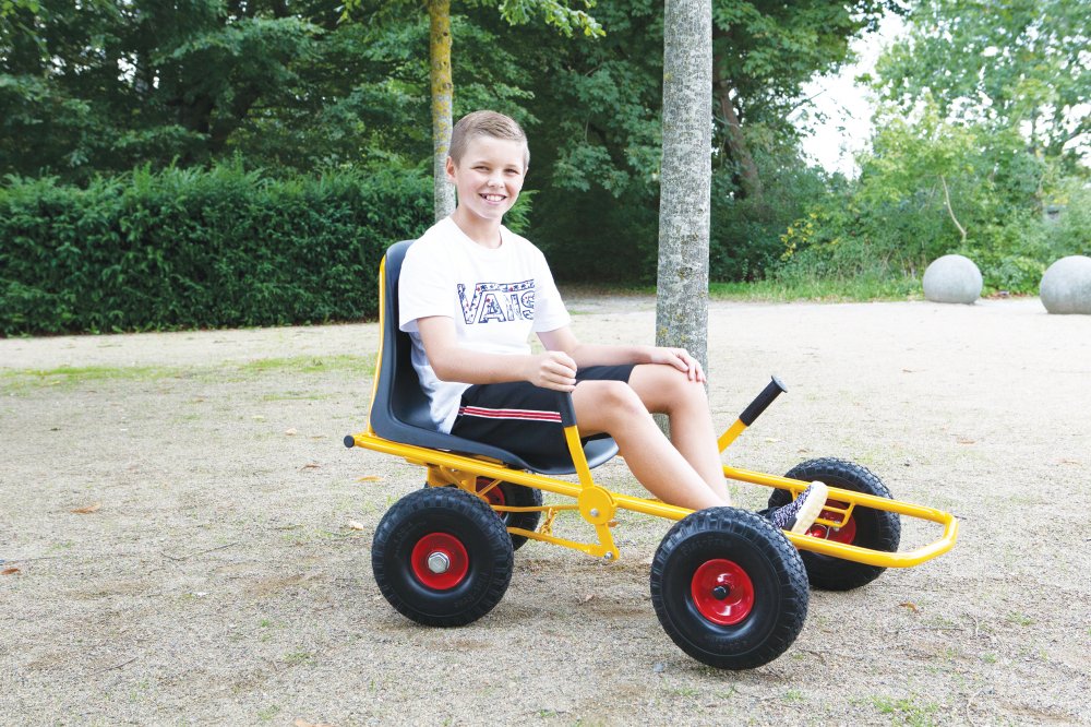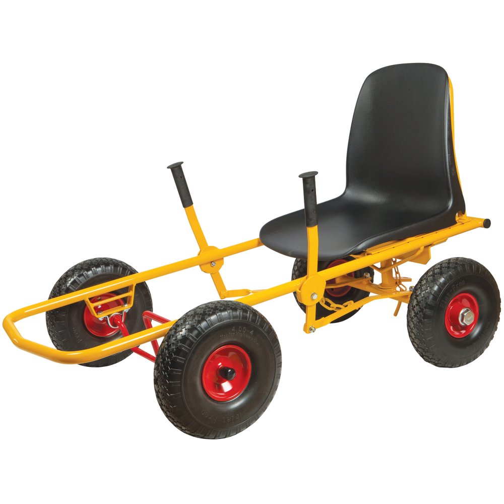 Moon-Car gokarten har pulverlakeret stålstel og -fælge.